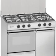 MEIRELES Cocina Milano 5F But., Inox, Portab., c/tapa, Horno a gas, 88×55, Quemador Wok
